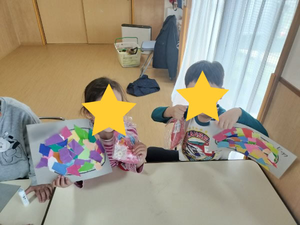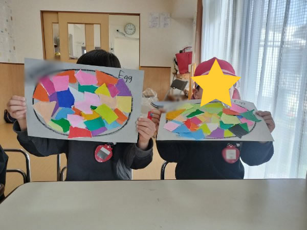 最後の幼児クラスレッスンはイースターエッグ貼り絵や、イースターエッグハンティングをして楽しみました。