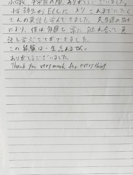 今年度も何人かの生徒さんがECCジュニア駄知・池田教室を卒業していきました。