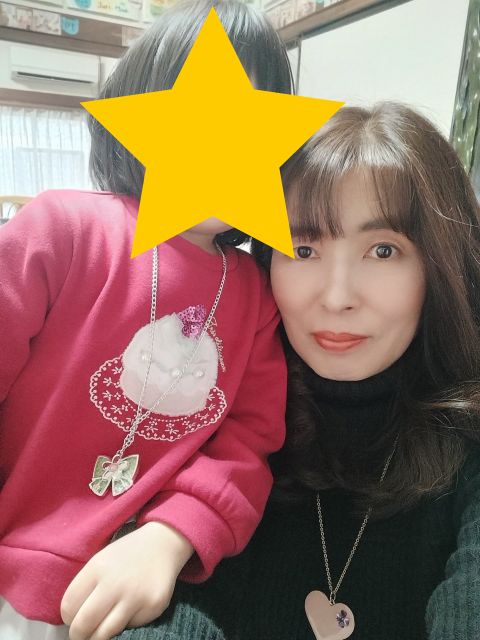 かわいいものが大好きなYちゃんと「ペンダントいっしょだね」と記念撮影。