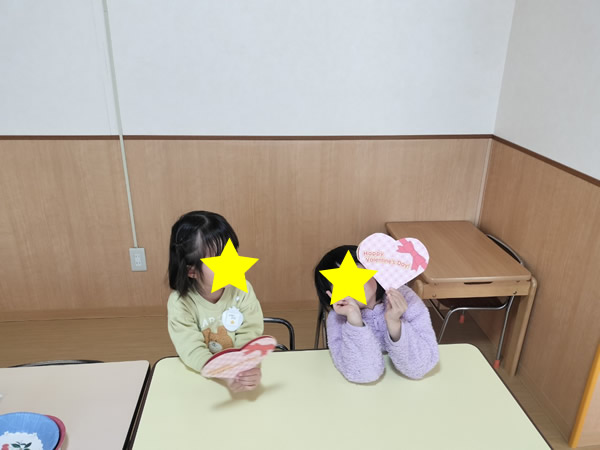 先日、バレンタイン前のレッスンですべてのPTクラスでバレンタインクラフトをしました。