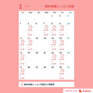 お問合せ頂いた際、お互い都合の良い日に無料体験レッスン日を設定させて頂いております。