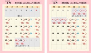 お問合せいただいた際に、お互いのご都合に合わせて体験日を設定させていただきます。