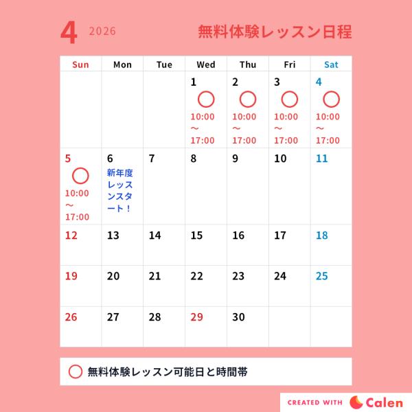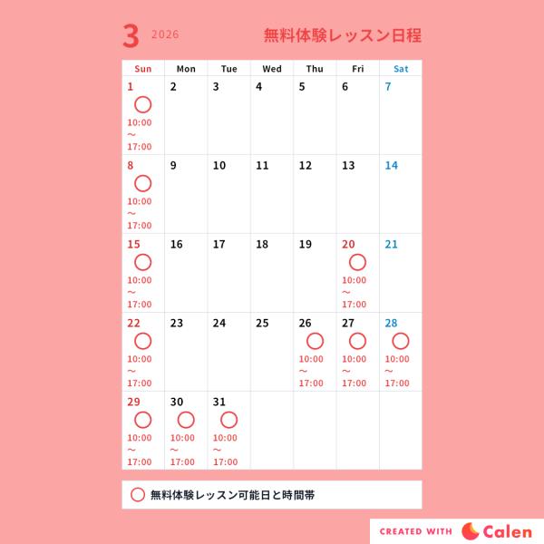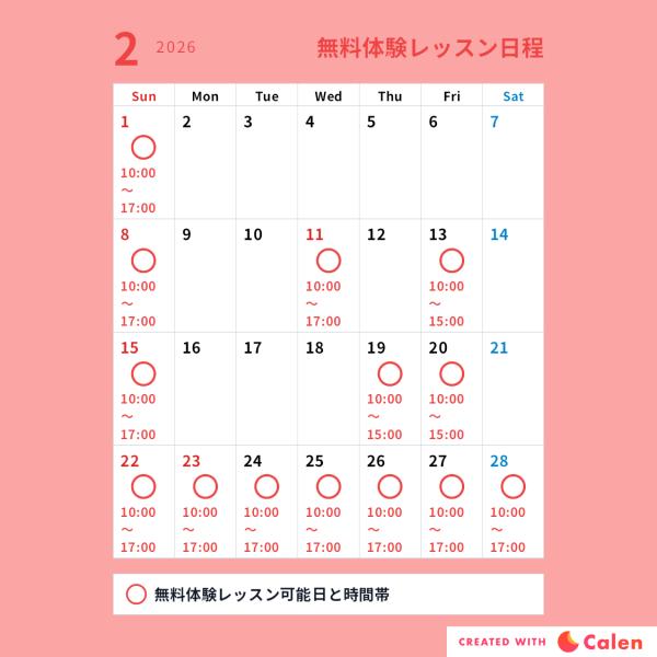 無料体験レッスン受け入れ可能日程