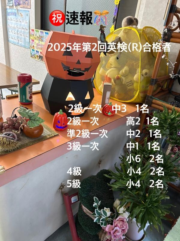 英検®準会場登録校のECCジュニア金岡教室にて実施された2025年度第2回英検®の合格者が速報で発表されました☆