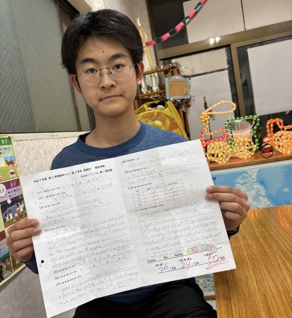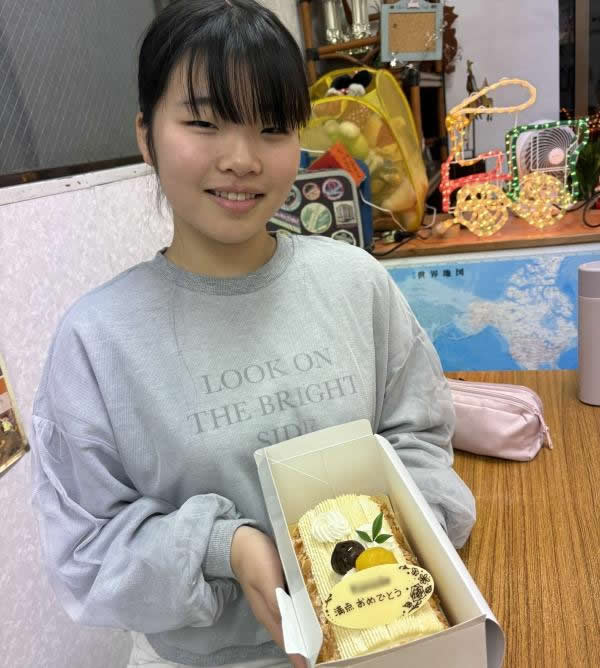 ECCジュニア金岡教室では、中学生英会話クラス/高校生英会話クラスを対象に、学校の英語の定期テストで満点が取れたら、【満点ケーキのプレゼント】があります