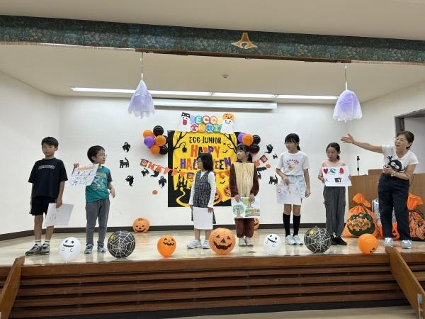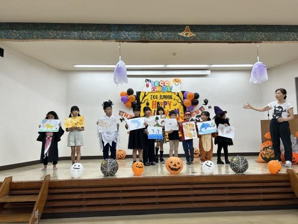 自作の絵も見応えたっぷり、たくさん練習して、自信を持って発表できました。