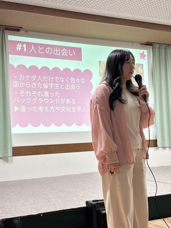 1年間のカナダ留学から帰国した卒業生Sちゃんのプレゼンテーションは、私たちに素晴らしい「未来」を見せてくれました。