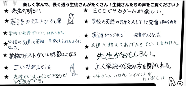ECCジュニア柚木教室には長く通う生徒さんがたくさん!