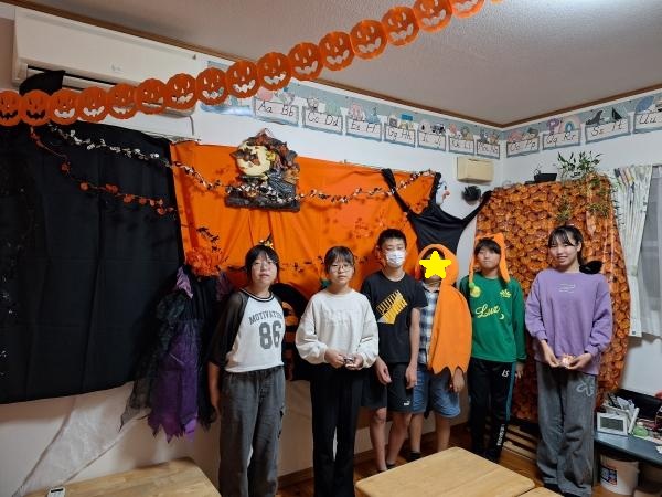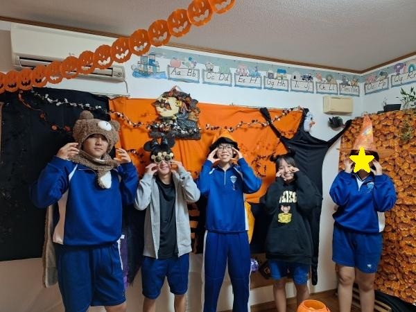 中3JAクラス。みんなでパンプキンポーズ!