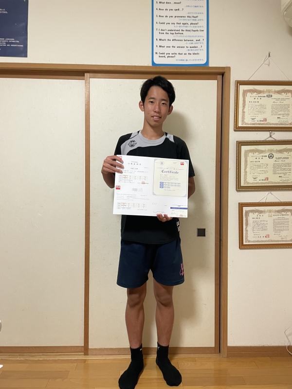 中学2年生のGくんは3級に合格!頑張りましたね!