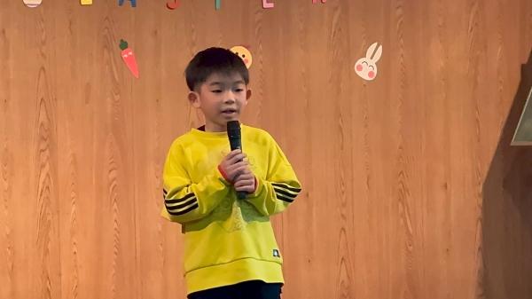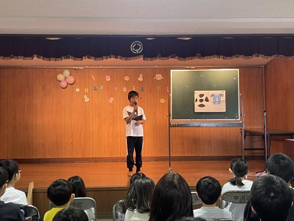 小学4年生はレッスンで作ったスピーチを披露しました。T君は大好きなサッカーについて発表してくれました。