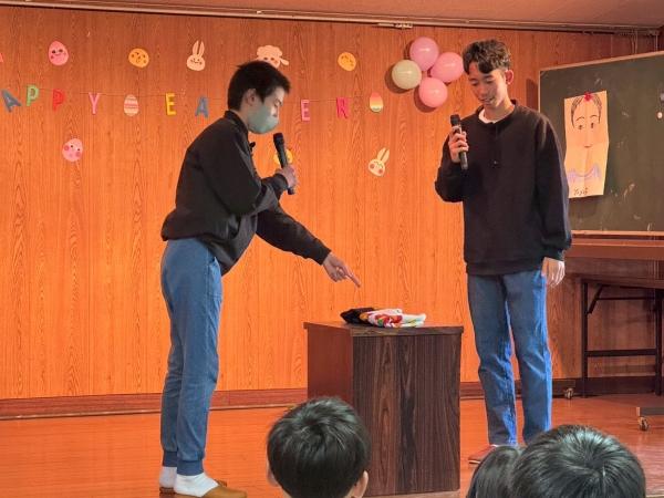 中学生は洋服屋さんでの英語のやりとりと課題文の暗誦発表をしました。