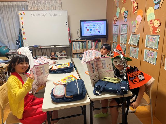 小学5,6年生のクラス。魔女やスティッチなど工夫して仮装してきてくれました。