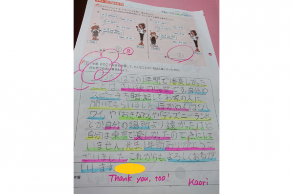 一年最後のhomework、嬉しい感想を書いてきてくれました。これからも一緒に頑張ろうね