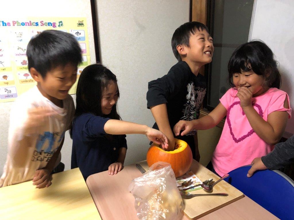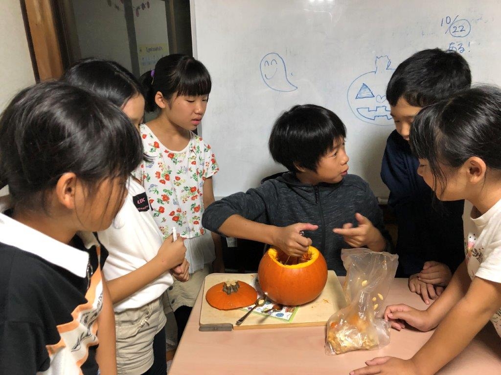 今年はとても良い形のパンプキンが手に入ったのでクラスでカービングに挑戦しました