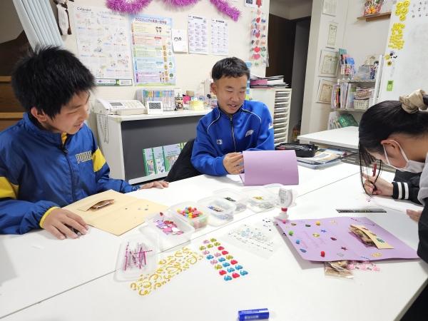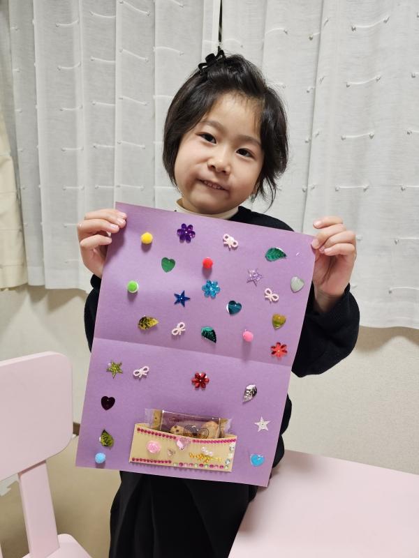 思い思いに飾りをつけてカードを作ったよ♡