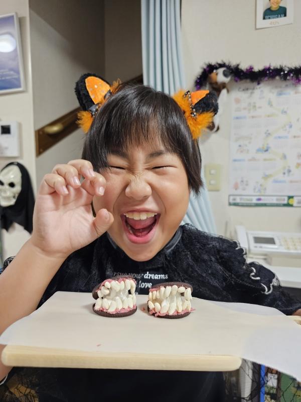 幼児、小学生の皆さんは【歯】、中学生の皆さん【パンプキンスコーン】作り!