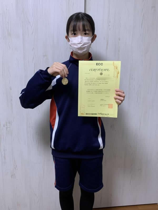 2025年12・1月に行われたECC児童英語検定試験で、4年生のYさんが満点をとり、ゴールドメダルを授与されました!よくがんばりましたね!