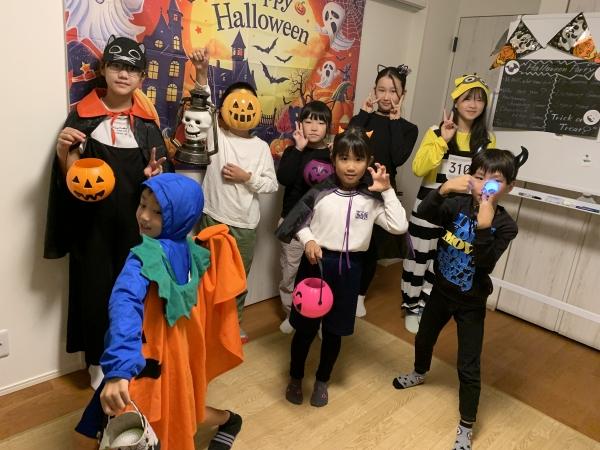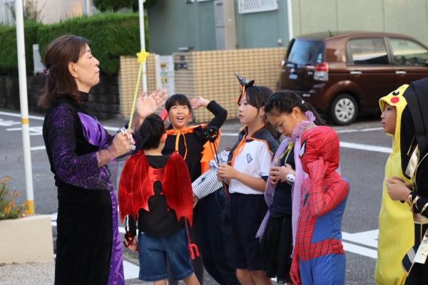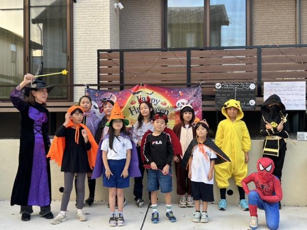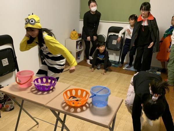 今年のハロウィンパーティーは駐車場と室内で身体を動かしたゲームを楽しみ、日没後trick or treatに出かけました。