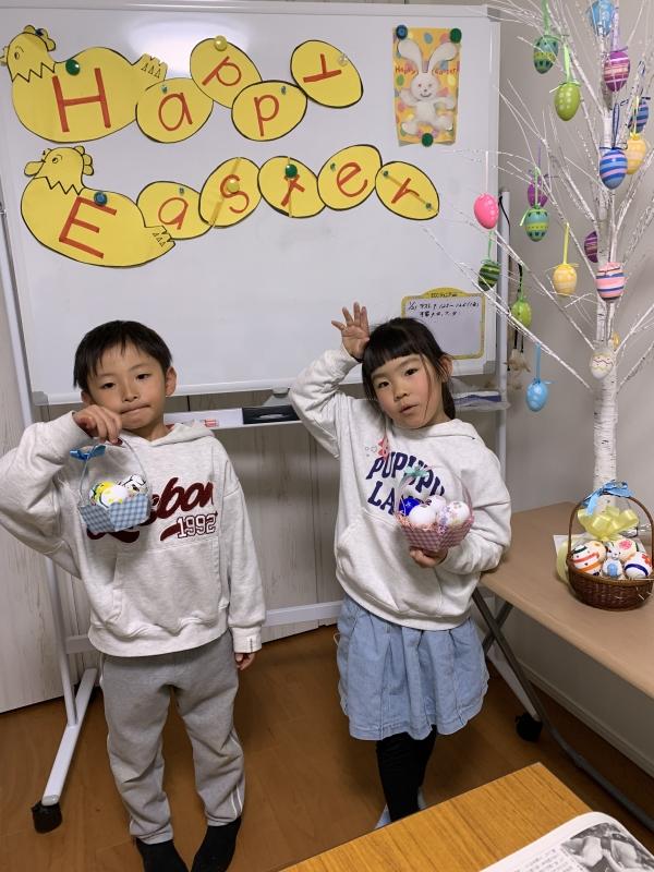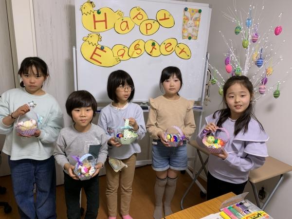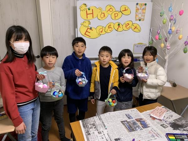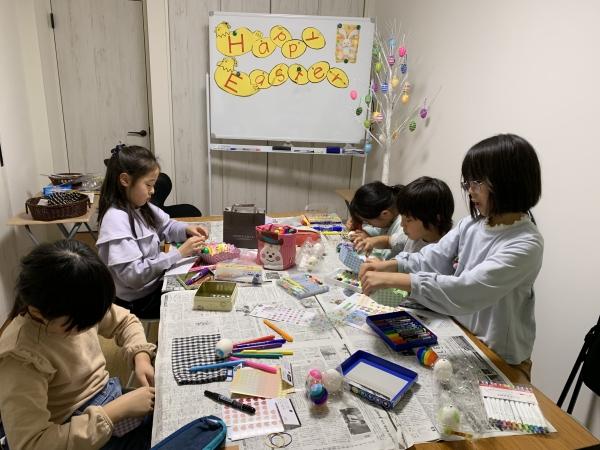 イースターバスケットの作成風景です。生徒たちは熱中しています。