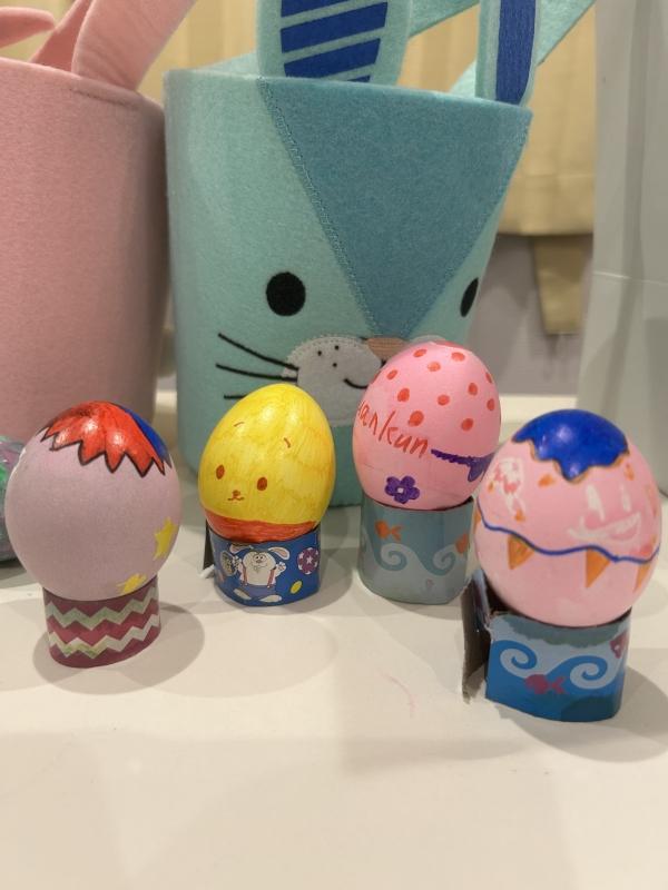 今年度の最後のレッスンはイースターエッグ作りました。一年みんな頑張ったね!