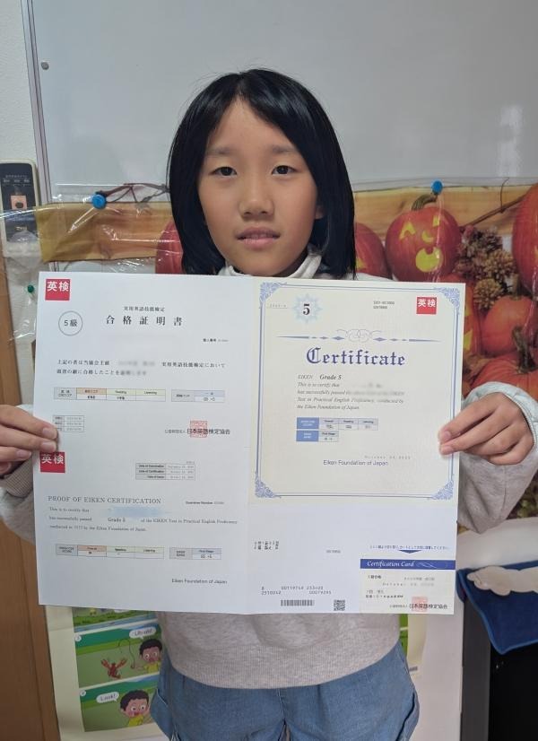 5級合格の 小4Hさん おめでとう!