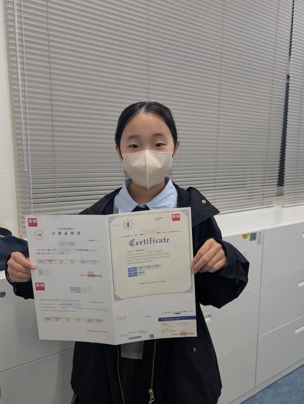 4級合格の小6Mさん、おめでとう!