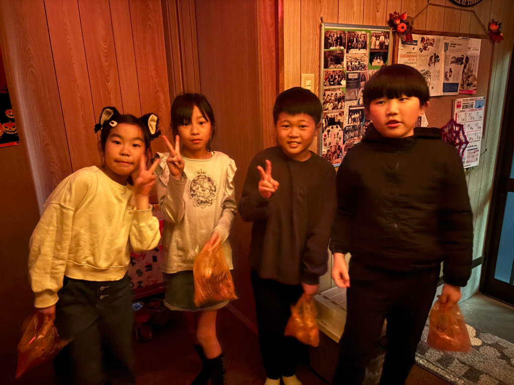 生徒達は少し緊張した面持ちでドアを開け、“Trick or treat!”