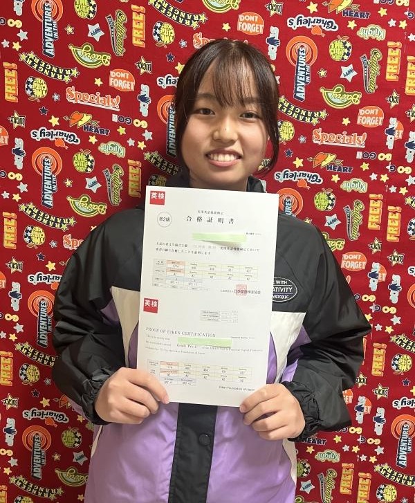 高校に提出する内申書に書ける様に中3の夏に3級を受けて合格し、更なる意欲が出て直ぐの秋に準2級に挑戦。速攻で合格しました!
