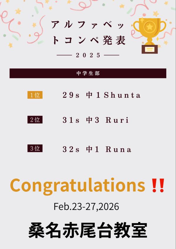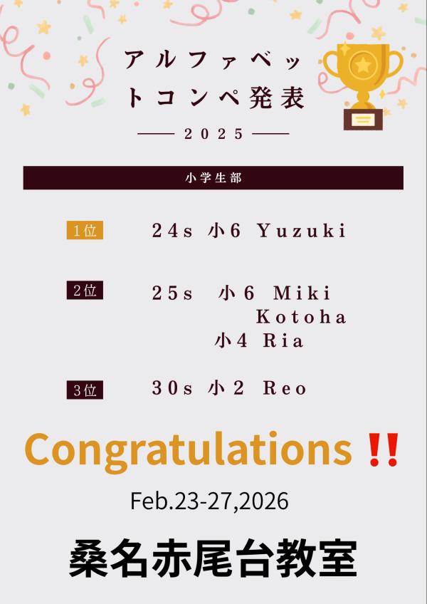 Yさん(小6) 銅賞 おめでとう!!