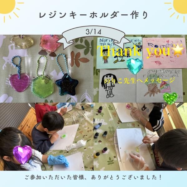 お母様方のご協力のお陰で可愛いレジンキーホルダーを作成し、お家に持ち帰る事が出来き、のりこ先生は大変嬉しく思います!!