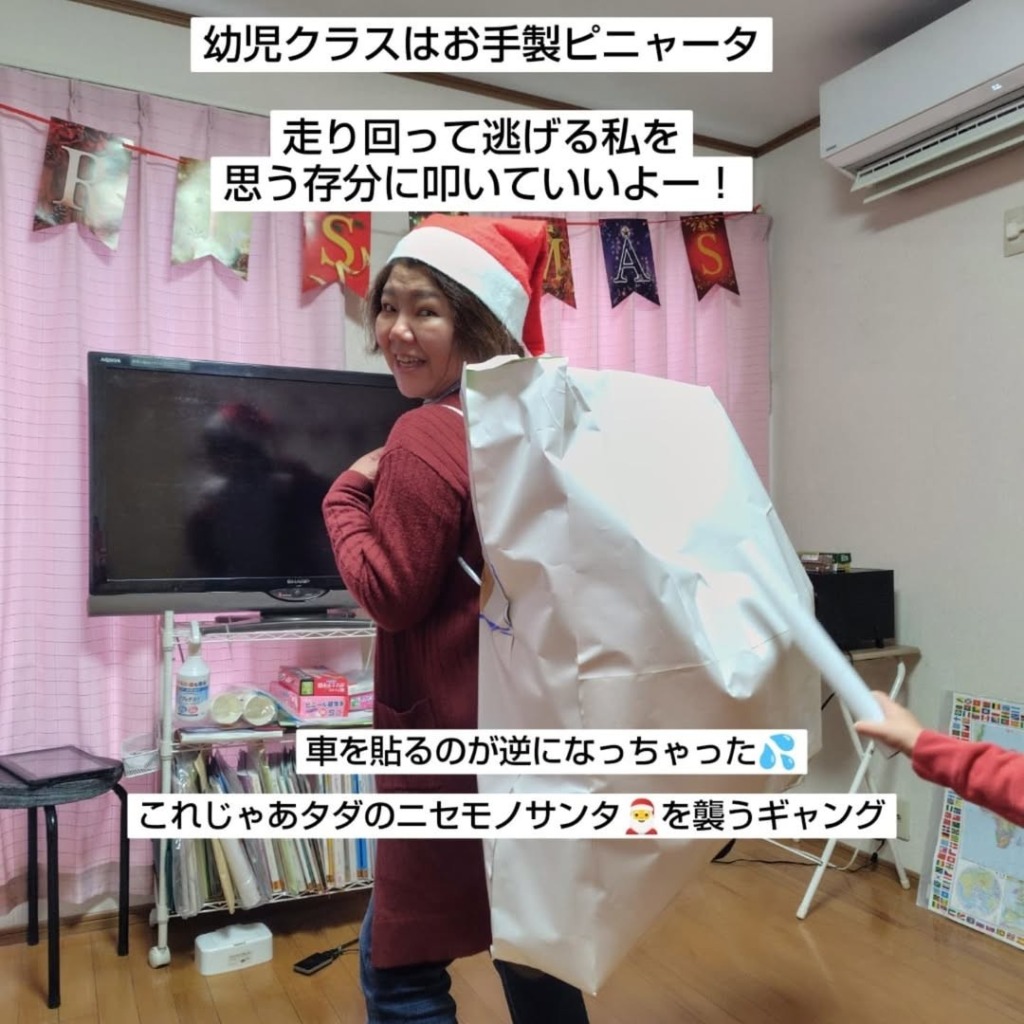幼児さんのクラスは、昨年好評だったピニャータと、クリスマスカードを作成して楽しみました。