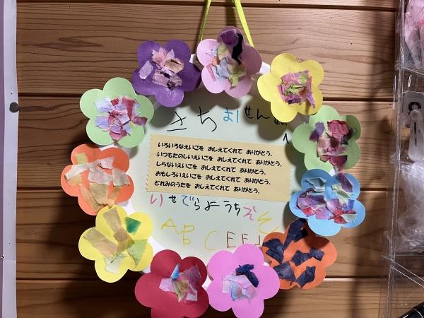 そんな中、今年度の締めくくりに花岡幼稚園と伊勢寺幼稚園の皆さんから、サプライズで心のこもった手作りプレゼントをいただきました。