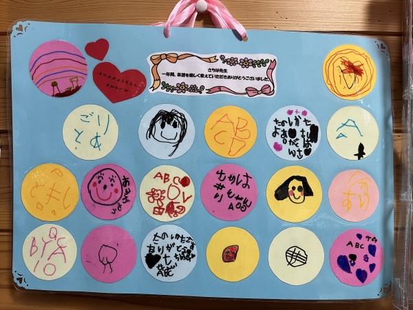 みんなの似顔絵や「ABC」の文字、そして楽しかった思い出が詰まった寄せ書きをいただきました。