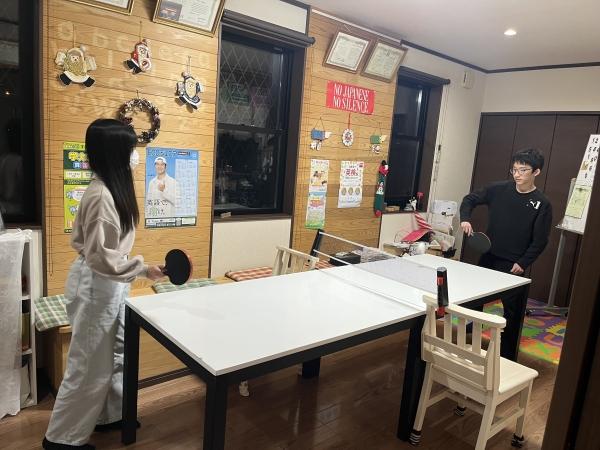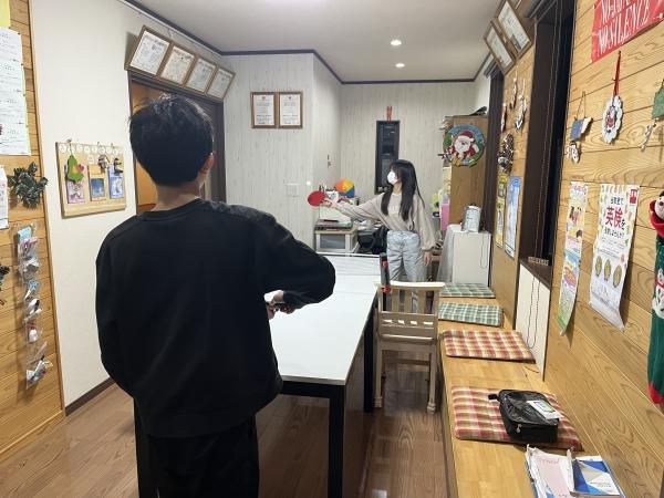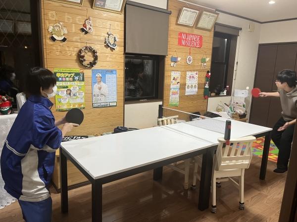 今年も教室のテーブルを繋げて作った特設コートでの「卓球大会」。