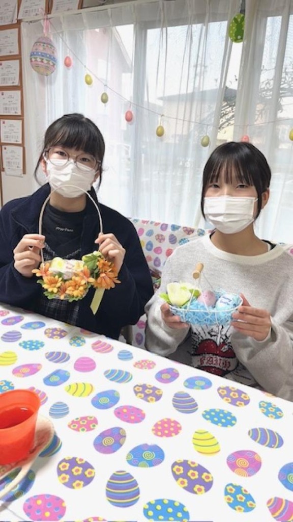 2024年度のイースターパーティー兼修了式を行いました。イースターパーティーは幼児クラスと小学生クラスのみで、可愛いイースターエッグをデコレーションしました。中3、高3クラスは卒業お祝いにクッキーを作りましたよ!全クラス1年間頑張ったご褒美にECCショッピングを楽しんでくれました!1年間よく頑張りましたね!!