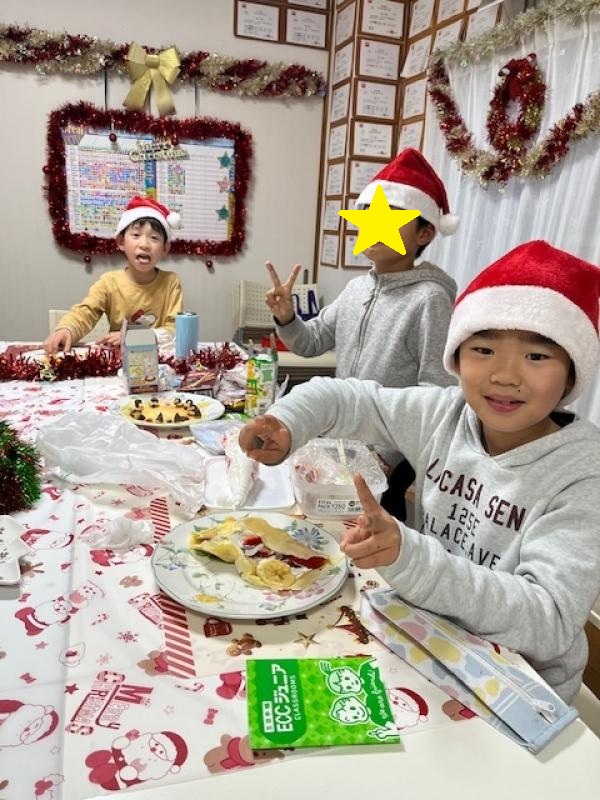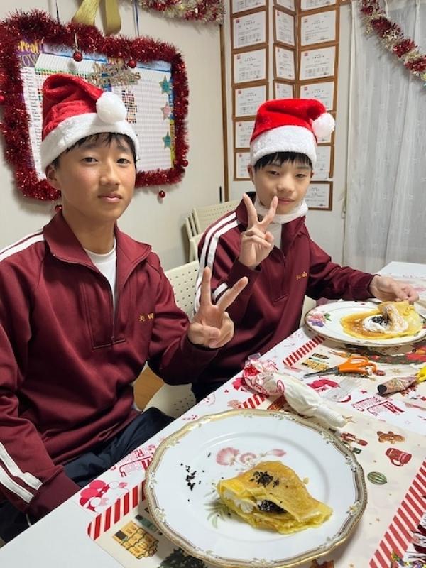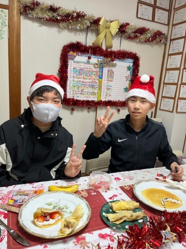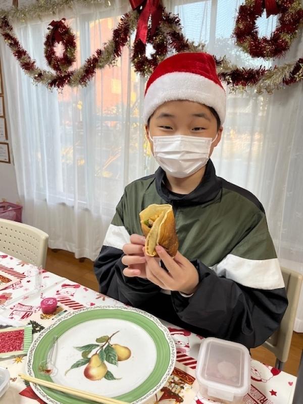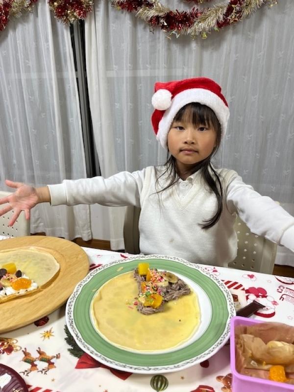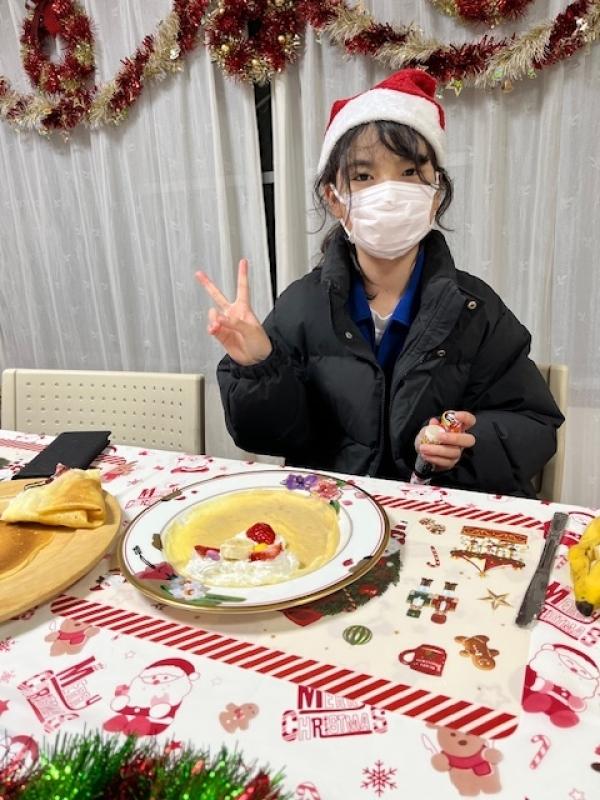 Merry Christmas! 今年のクリスマスパーティーは久しぶりにクレープです。リクエストされて決まりましたが、クレープメーカーを使って楽しく上手にクレープが焼けました。みんないい笑顔です!