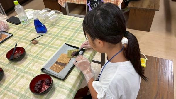 1年生クラスは生産物がどんな食べ物でできているかを発表