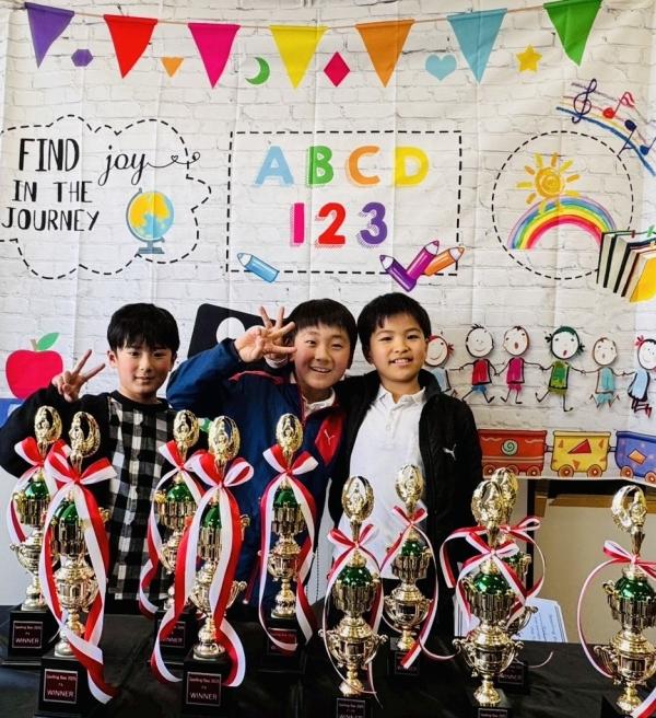 PIクラス優勝者。3人とも、練習では思う通りに書けなくて悔し泣きをしていました。その悔しさをバネに掴み取った優勝!おめでとう!