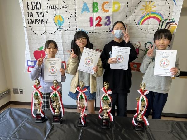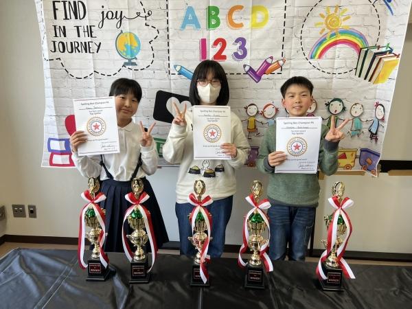 小学3年生と4年生クラスと、小学5年生と6年生クラスに分かれて、それぞれ課題単語100問から抽出された50問を20分で、正確に書けるかを競います。満点優勝者にはトロフィーを贈呈!
