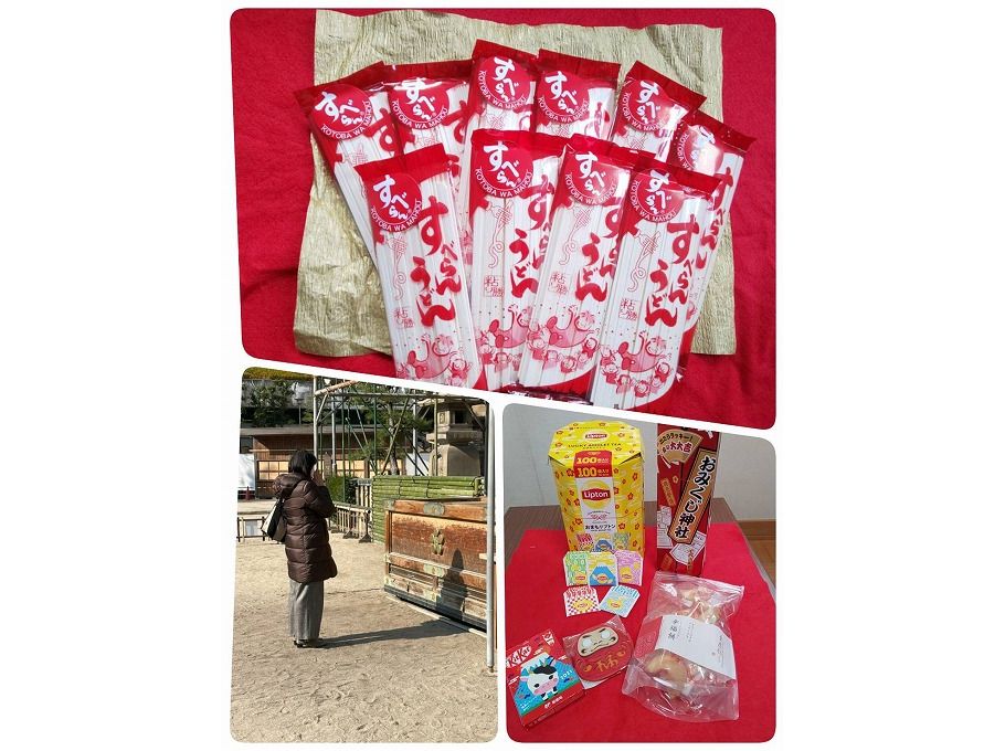 謹賀新年!教室のドアを開けたら、かわいい生徒3人が、門松になってました。