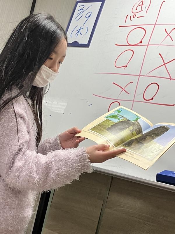ブックの発表です。前に出てイラストが見えるようにして発表してくれましたよ!4年生。2026.3月