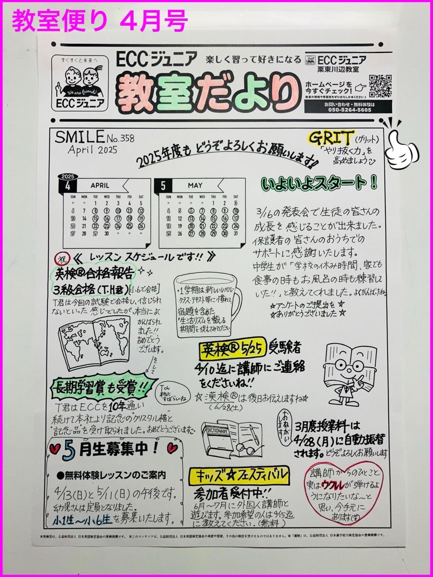 栗東市川辺・草津近隣で英検®受験をお考えの方、また、英語・英会話を子どもさんに楽しく学ばせたい方、お気軽にお問い合わせください。