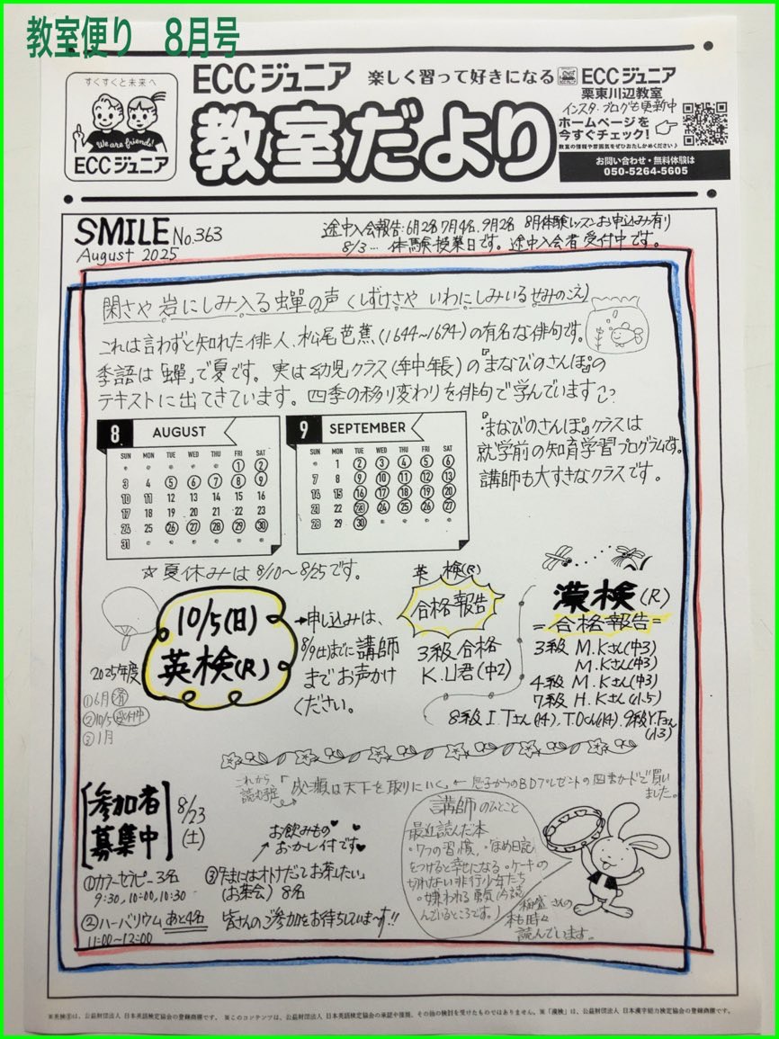 教室便り8月号(SMILE No.363)