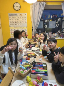 幼児のお子さまには、「遊び」の要素をふんだんに取り入れたレッスンの中で、英語のインプットと、知的発達を促すことを重視しています。英語のリズム感やリスニング力が培われるとともに、すべての学習の基礎となる思考力が育まれます。