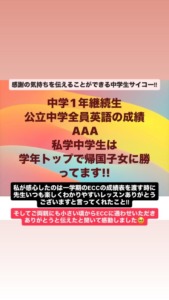 今年で32年目になるECCジュニア右京嵯峨の老舗教室、有栖川教室。2020年よりコロナ感染拡大により、いち早くオンラインレッスンも対応しました。英語と子供が大好きな講師藤川は児童心理学を勉強し自身の留学体験、3人の子育て体験を活かし楽しく力のつくレッスンを提供しています。沢山の卒業生から今も連絡をいただき日々色々なワクワクを共有し人生を楽しませていただいてます。