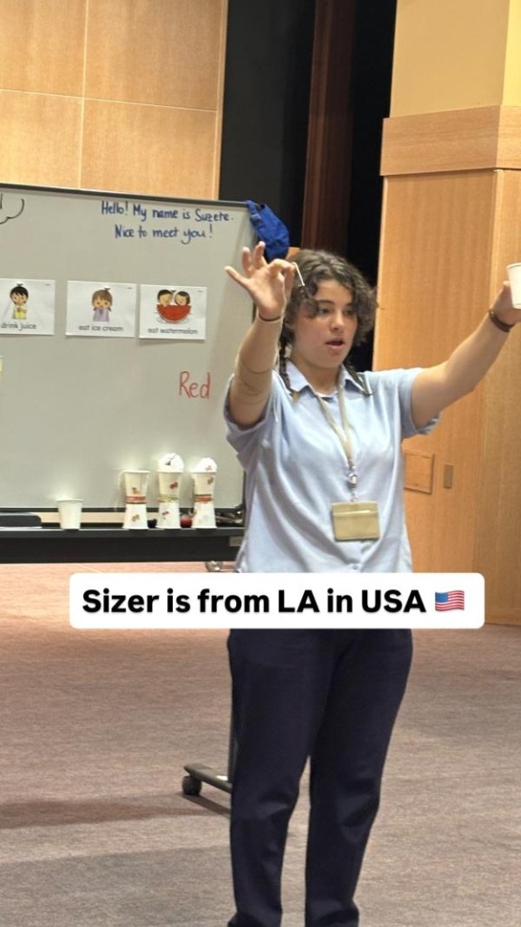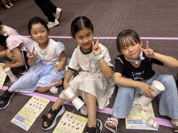 英語のアクティビティで受け答えをしたり、身体を動かしてゲームをしたり、紙コップを使ったけん玉も作りみんな楽しんでくれて有意義な一日になりました。