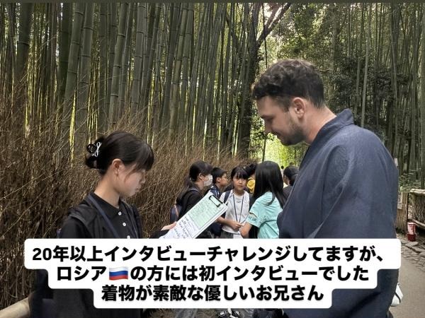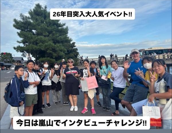 有栖川教室恒例の外国人観光客へのインタビューチャレンジ!!今年も嵐山で実施しました。みんな楽しそうです。
