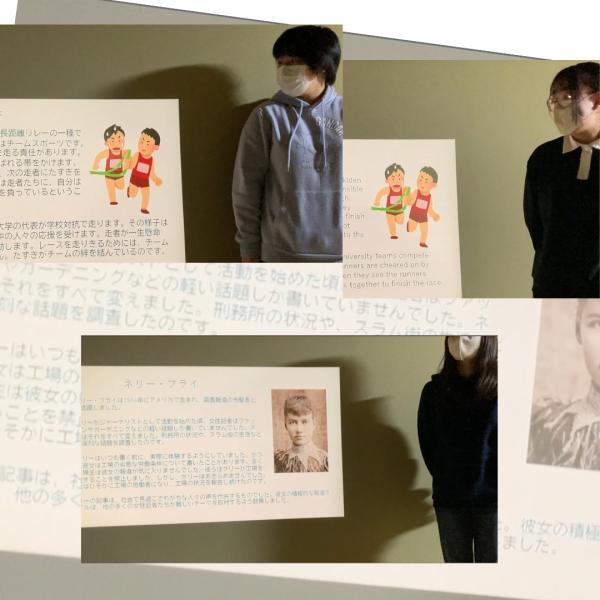 プロジェクターでは、日本語を表示して、それをヒントに英語で発表するという形でトライしました。