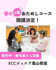 右京区嵯峨五島町近隣で英検®受験をお考えの方、また、英語・英会話を子どもさんに楽しく学ばせたい方、ECCジュニア嵐山教室へお気軽にお問い合わせください。